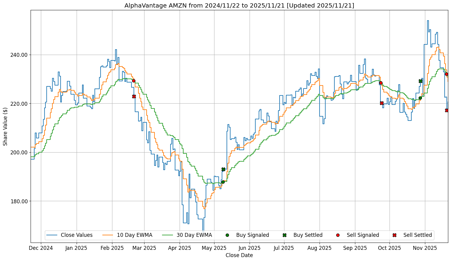 Thank you for using Alpha Vantage! Please consider spreading out your free API requests more sparingly. You may subscribe to any of the premium plans at https://www.alphavantage.co/premium/ to lift the free key rate limit (25 requests per day) and instantly unlock all premium endpoints Could not retrieve data from remote server for AMZN.
