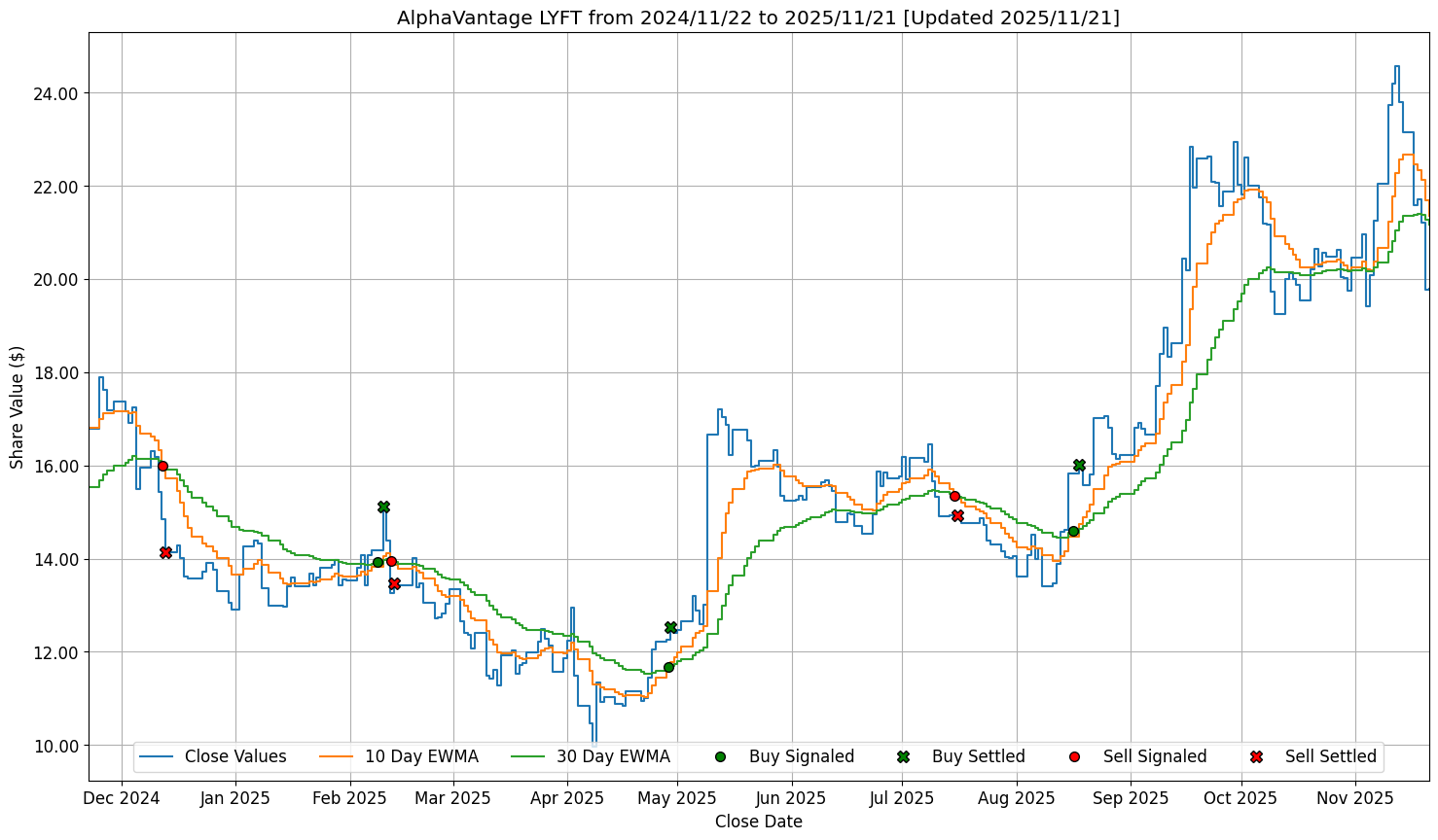 Thank you for using Alpha Vantage! Please consider spreading out your free API requests more sparingly. You may subscribe to any of the premium plans at https://www.alphavantage.co/premium/ to lift the free key rate limit (25 requests per day) and instantly unlock all premium endpoints Could not retrieve data from remote server for LYFT.