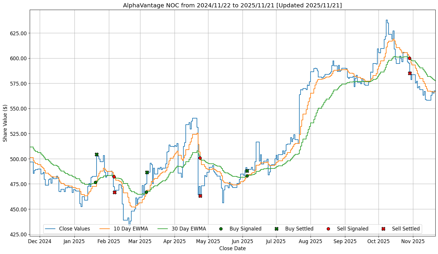 Thank you for using Alpha Vantage! Please consider spreading out your free API requests more sparingly. You may subscribe to any of the premium plans at https://www.alphavantage.co/premium/ to lift the free key rate limit (25 requests per day) and instantly unlock all premium endpoints Could not retrieve data from remote server for NOC.