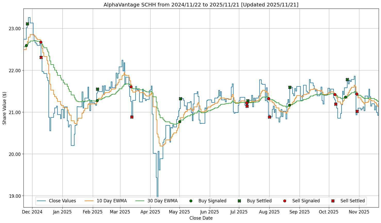 Thank you for using Alpha Vantage! Please consider spreading out your free API requests more sparingly. You may subscribe to any of the premium plans at https://www.alphavantage.co/premium/ to lift the free key rate limit (25 requests per day) and instantly unlock all premium endpoints Could not retrieve data from remote server for SCHH.