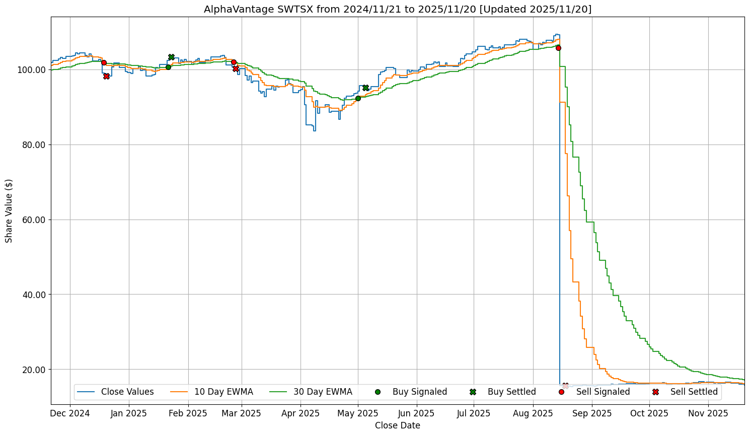 Thank you for using Alpha Vantage! Please consider spreading out your free API requests more sparingly. You may subscribe to any of the premium plans at https://www.alphavantage.co/premium/ to lift the free key rate limit (25 requests per day) and instantly unlock all premium endpoints Could not retrieve data from remote server for SWTSX.